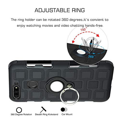 LFDZ Huawei Y6 2018 Custodia, Resistente TPU Case Design 360 Grado Rotazione Protective Custodia Cover per Huawei Y6 2018 / Honor 7A / Enjoy 8E Smarphone(con 4in1 Regalo impacchettato),Nero