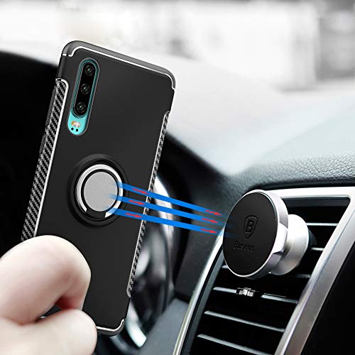 LFDZ Huawei P30 Custodia, Resistente TPU Case Design 360 Grado Rotazione Protective Custodia Cover per Huawei P30 Smartphone (Non Compatibile con Huawei P30 PRO / P30 Plus),Nero
