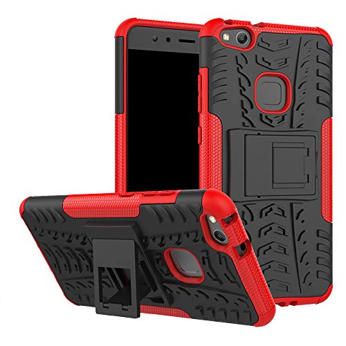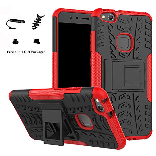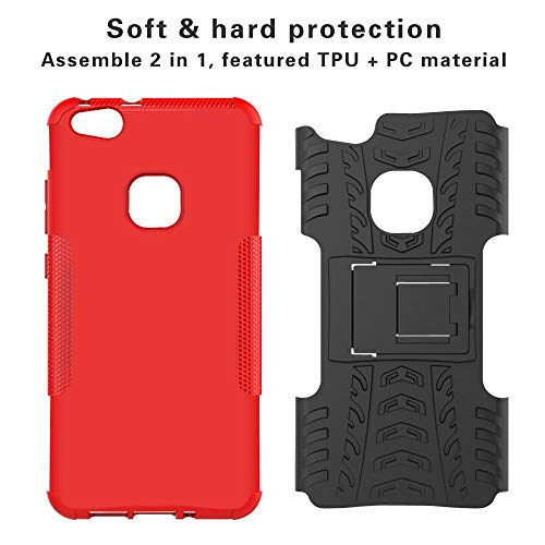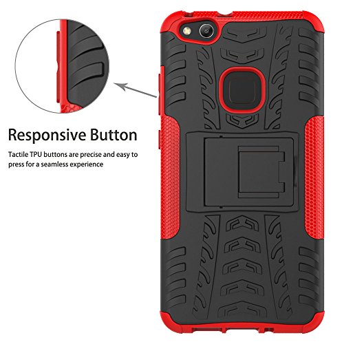 LFDZ Huawei P10 Lite Custodia, Resistente alle Cadute Armatura Robusta Custodia Shockproof Protective Case Cover per Huawei P10 Lite Smartphone (con 4in1 Regalo impacchettato),Rosso