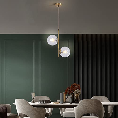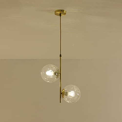 LFsem Lampade a sospensione a globo in vetro trasparente a 2 luci Lampada da soffitto a lampadario in ottone dorato per comodino (trasparente)