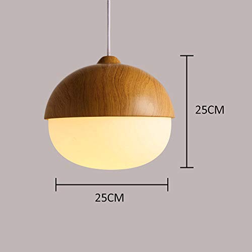 LFsem Luce pendente a forma di dado nordico Lampada da soffitto in vetro satinato bianco latteo Lampada a sospensione a grana in legno Luce a soffitto in metallo Luce a sospensione E27 (C)