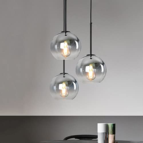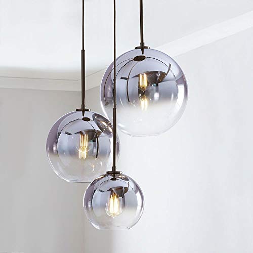LFsem Nordico Gradiente Colore Palla di vetro Pendente Illuminazione Moderna Lampada da soffitto Loft E27 Lampadario a sospensione per soggiorno Sala da pranzo Camera da letto (Argento,30 cm)