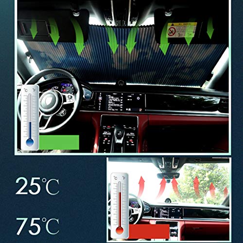 [Materiale di qualità]: la grande ventosa viene adsorbita sul parabrezza, che non è facile da staccare ed è facile da installare. L'alluminio di alta qualità in argento può isolare più del 90% del sole.