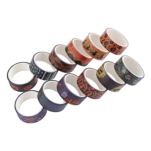 LGEGE 12 rotoli di nastro Washi Tape a tema Halloween, 15 mm di larghezza, teschio, zucca, modello di strega, decorazione giapponese con nastro di mascheratura per scrapbook, Bullet Journal (2 m)