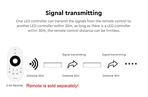 3) Telecomando (escluso): può essere controllato dal telecomando Miboxer/Milight serie 2,4 GHz come FUT007 B2 K1 S1-W, tutto è venduto separatamente
