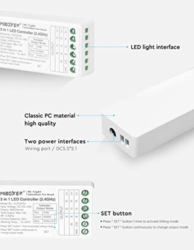 LGIDTECH FUT037S+ Miboxer 3 in 1 LED Strip Controller 2.4GHz, funziona con RGB/RGBW/RGB+CCT LED Strip Light, compatibile con Alexa Google Home Voice Control tramite WL-Box1 Gateway (escluso)