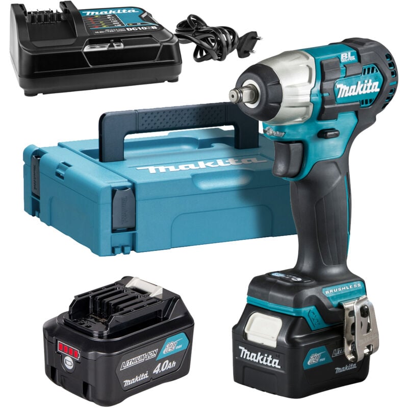 Leggero e compatto Consegnato in una scatola MAKPAC L'illuminazione a LED incorporata garantisce una buona visibilità della base di lavoro Solido: alloggiamento in alluminio con rivestimento Soft Grip Gancio per cintura posizionabile a destra e a sinistra Inversione del senso di rotazione