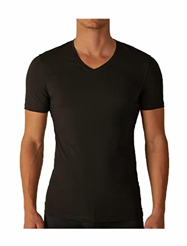 Liabel Maglietta Intima Uomo Cotone BIELASTICO Scollo V Offerta 3 e 6 Pezzi, Maglia Intima Uomo Elasticizzata B45 (3 PEZZI NERO, L)