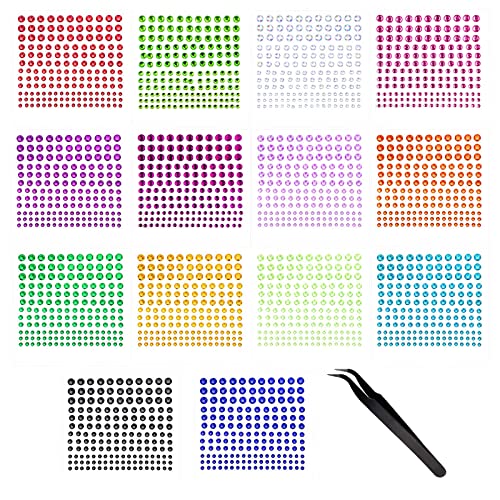 ✨【Pacchetto Include】I gioielli autoadesivi hanno fino a 2310 strass rotondi, per un totale di 14 fogli. Ogni set viene fornito anche con un paio di pinzette. Ogni foglio ha 165 strass di diversi colori e dimensioni. Ci sono 33 strass da 6 mm, 36 strass da 5 mm, 42 strass da 4 mm e 54 strass da 3 mm.