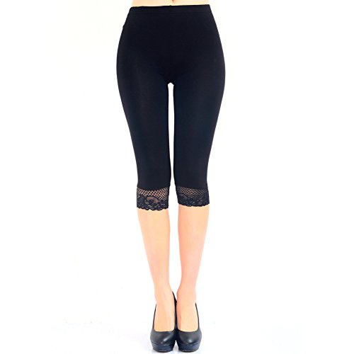 Leggings Capri da donna, elasticizzati, colore nero, ultra sottili, consigliati per l'uso con magliette lunghe, tunica o gonne corte. Sarà un po' trasparente quando indossato da solo.