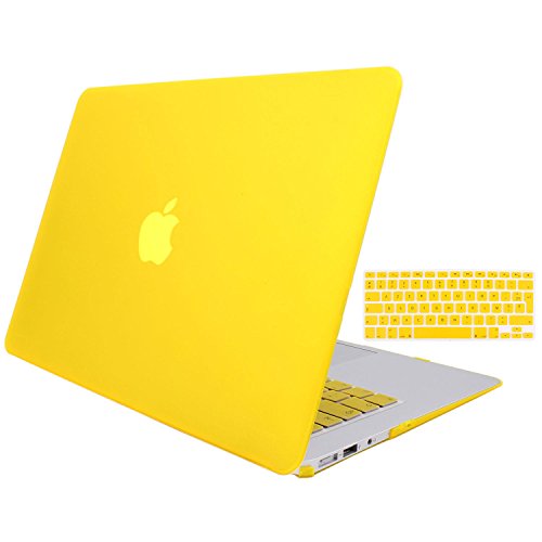 LIANG Custodia cover Macbook Air, Gommato Duro Caso Copertina per 13.3 Pollice Macbook Air con Europeo Stile Morbido Tastiera Copertina, Giallo