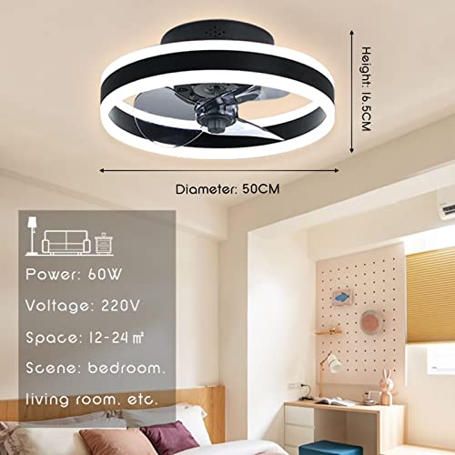 LIANG Ventilatore da Soffitto con Illuminazione e Telecomando, 60W Ventilatore Dimmerabile con Timer, super silenzioso 6 velocità regolabili, Adatto per camere da letto e soggiorni(Φ50cm,Nero)