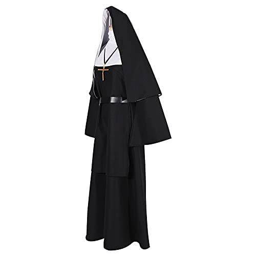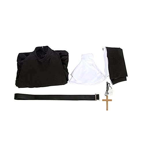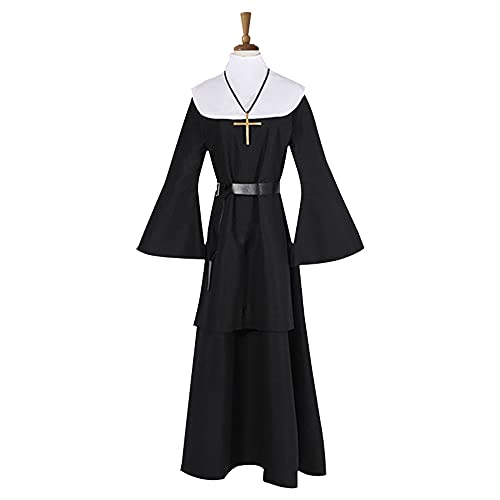 Yu Liao Costume da Suora Costume Religioso Costume di Halloween per Donna Costume Vestito con Cintura e Copricapo, Collana Croce Nera