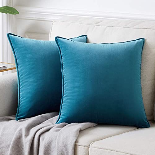 LIAOXIONG Fodera per Cuscino Federa in Velluto, 2 federe Decorative per Divano, Letto da Interno e Cuscini per Divano, Cuscini Decorativi (Blu Pavone, 50x50cm)