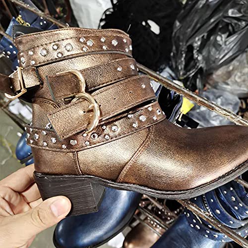 Liart Stivali Donna Invernali Bassi Stivali da Cowboy con Fibbia per Cintura Stivaletti con Tacco e Plateau Chelsea Boot Trainer