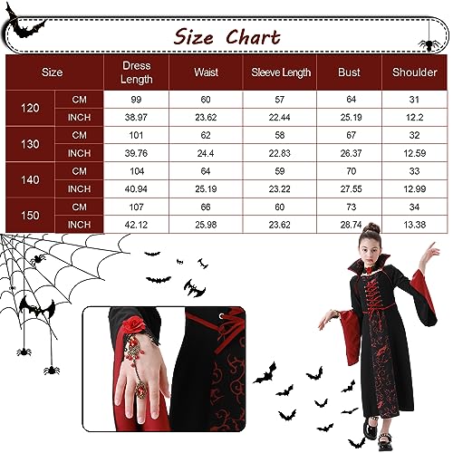 LIAWEI Costume da Vampiro Halloween Bambina Vestito Vampiro Gotico Regina Costumi Carnevale per bambini Principessa vampira con collana e bracciale (150, Rosso)