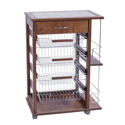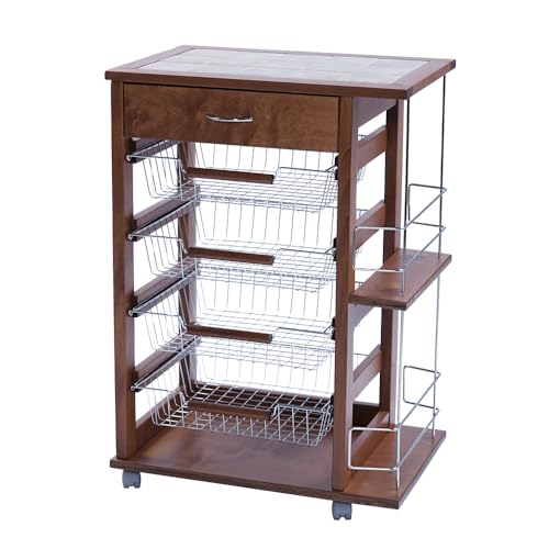 LIBEROSHOPPING.eu - LA TUA CASA IN UN CLICK Carrello da Cucina Porta Frutta con cassetto e portabottiglia (Noce)