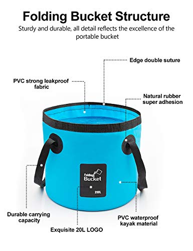 LIBERRWAY Secchio pieghevole da campeggio contenitore portatile per acqua da 20 litri, secchio pieghevole per viaggi, escursionismo, pesca, canottaggio, giardinaggio, blu