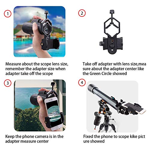 Una vasta gamma di applicazioni : Staffa adattatore per smartphone per oculari con diametro esterno di 28mm-47mm, può essere montata su binocoli, cannocchiali, telescopi astronomici, telescopi per il birdwatching e oculari microscopici