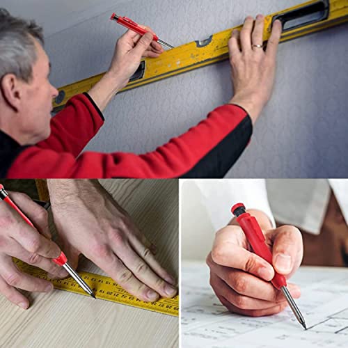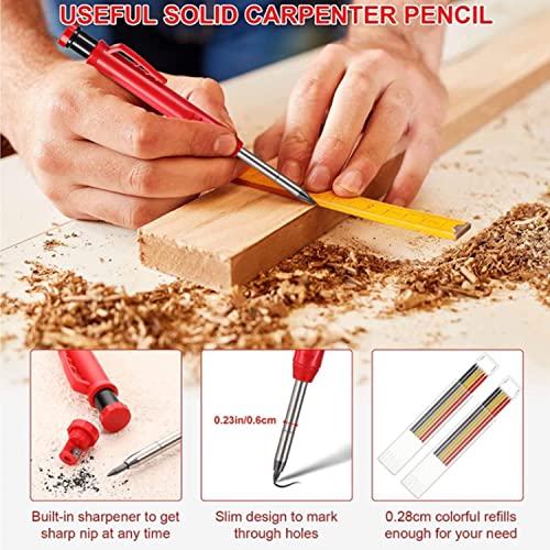 Libershine Matita da Cantiere Solida, 2 Pezzi Set di Matita da Cantiere, Con 6 Ricariche e Gomma, con Temperamatite Incorporato Strumenti Marcatura Falegnameria, Adatto per Architetti di Falegnameria