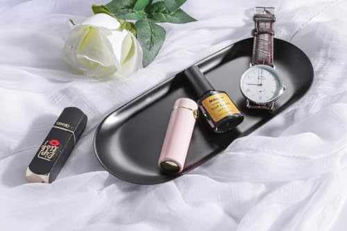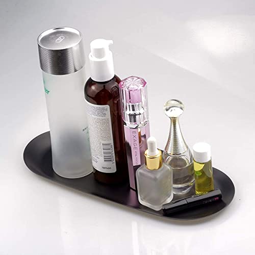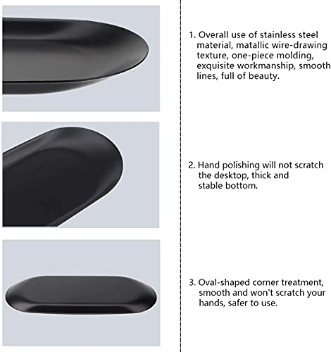 Libershine 2 Pezzi Vassoio di Stoccaggio in Acciaio INOX, Asciugamano Ovale Vassoio per Cosmetici Vassoio Decorativo per Conservare Candele, Bevande, Frutta, Profumi, Chiave (nero)