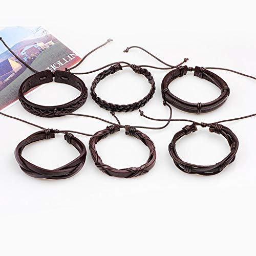 Libertroy 6PCS / Set Multistrato da Uomo in Tinta Unita PU Intrecciato in Pelle Bracciale Casual Braccialetti Gioielli Miglior Regalo di Compleanno - caffè