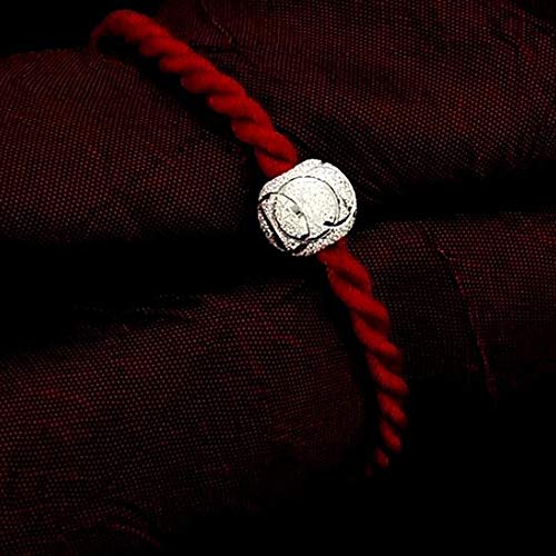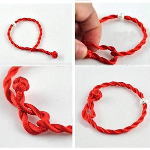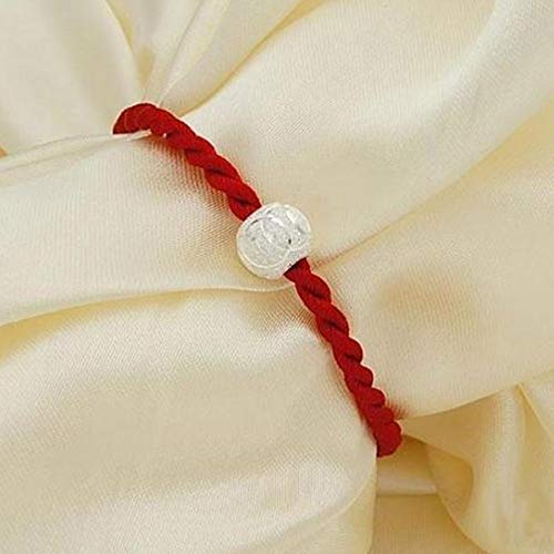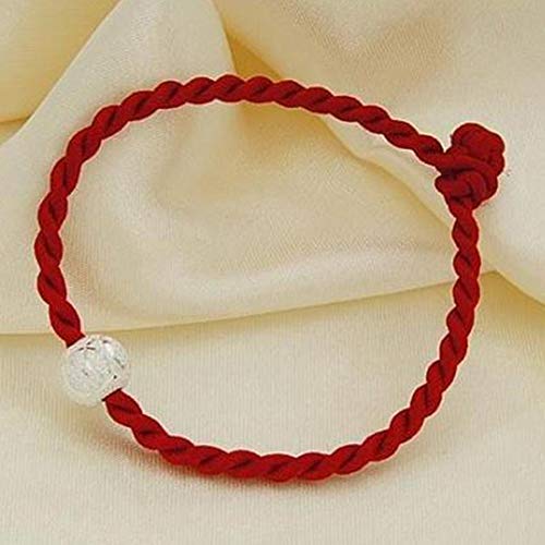 Libertroy Feng Shui Cinese Fortunato Corda Rossa Corda Tessuti a Mano Pezzi con Perline d'Argento Corda Rossa Maglia bracciali Braccialetto Semplice Moda - Rosso