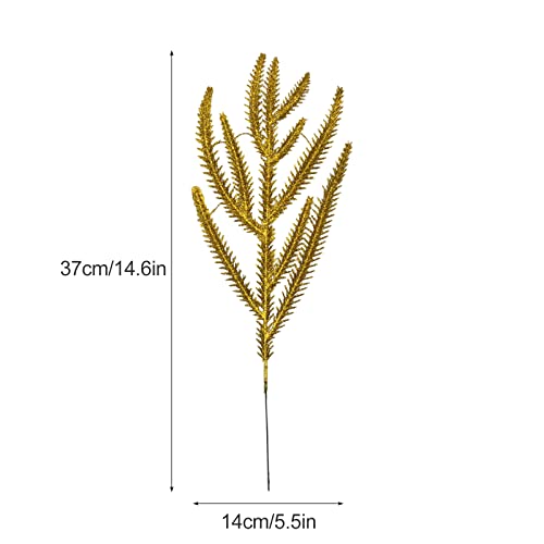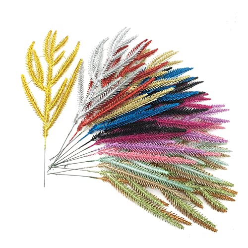 LIBOOI Rami di aghi di pino artificiali di Natale, in pino glitterato, steli di pino di Natale, rami di verde finti per decorazioni natalizie