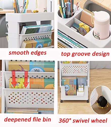 Libreria Mobile da Scrivania per Aula, Organizer da Scrivania Compatto con Ruote, Carrello Portaoggetti Sottile per Libri, Mensola Espositiva ad Angolo per Dormitorio Biblioteca, Carrello Multiuso