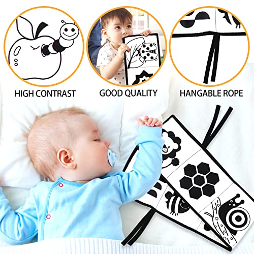 Libri di Stoffa per Neonati, Il Libro in Bianco e Nero Interattivo Accompagnare Il Bambino, Giocattoli Morbidi in Sviluppo Cognitivo visiva e Intellettivo,12 Pagine Pieghevole, Lavabile (B)