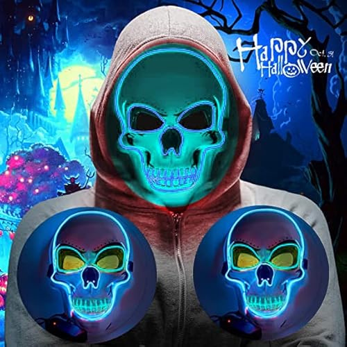 LIBRNTY LED skull mask,Illumina la maschere,V vendetta maschera,maschera the purge,Pittura del teschio fai-da-te e 3 modalità di lampeggio controllabili,per Costume Cosplay Festa e Party(blu)