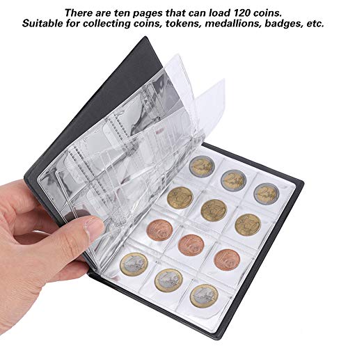 Libro da collezione di monete, 10 pagine e 120 monete Portatile tascabile con raccoglitore di monete Album raccoglitore di libri per collezionisti(Nero)