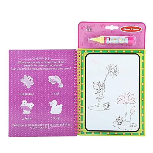 Libro di disegno portatile magico dell'acqua dell'acquerello con riutilizzabile Acqua penna colorazione arte impostazione regalo educativo giocattolo per bambini bambini piccoli(Flower Fairy)