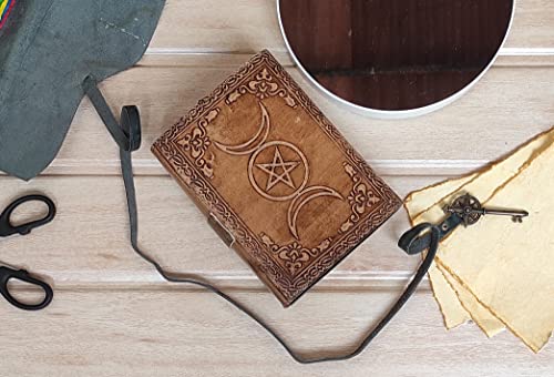 Libro di ombre in pelle vintage diari grimoire celtico strega pietra diario vuoto magia marrone la tripla luna inesplorata merce deckle bordo carta wiccan sketchbook per le donne 17,8 x 12,7 cm