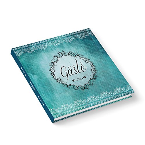 Libro degli ospiti (copertina rigida) tela in stile Shabby Look retrò, quadrato, 21 x 21 cm con turchese 164 pagine vuote;