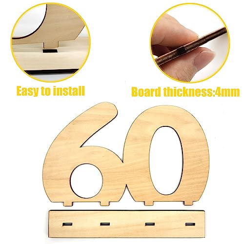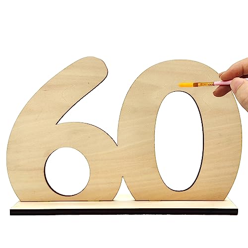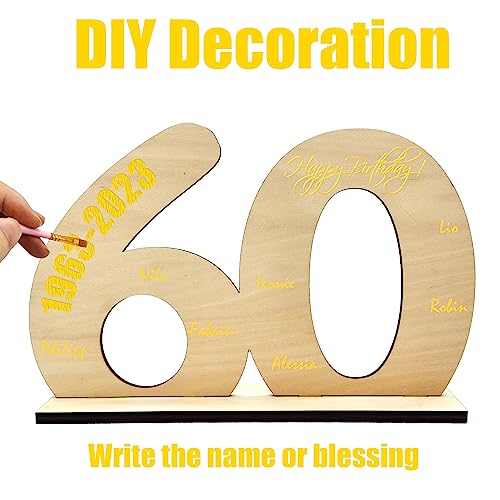 核心词 Libro degli Ospiti in Legno Targa in Legno per gli Ospiti Targhe di Anno Numero Legno con Supporto Decorazione Desktop per 60 Anni Uomo Donna Compleanno Anniversario di Matrimonio Numero 60 (A)