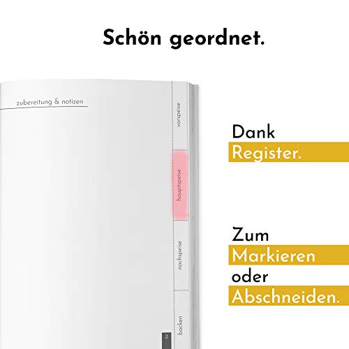 Ordinato da regista - Il registro ha le quattro categorie di antipasti, antipasti principali, antipasti e dolci. In questo modo troverai rapidamente ispirazione per ricette adeguate. Puoi colorare il registro o semplicemente tagliarlo.