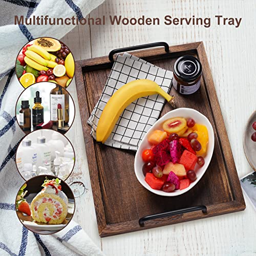 LIBWYS Vassoio da portata in legno con manico, 2 pezzi, decorativo rettangolare, in legno, per la colazione, tavolino da caffè e butler (grande 40 x 30 x 3,2 cm, piccolo 34 x 24 x 3,2 cm)