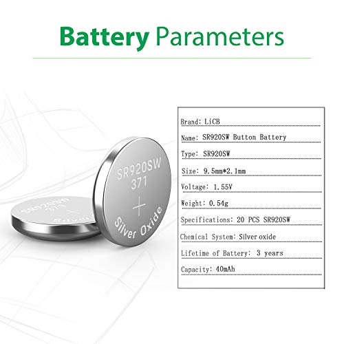 LiCB, 20 batterie a bottone SR920SW 371 LR920 AG6 370, da 1,55 V, per orologi