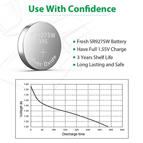 Durevole e a risparmio di costi: ricevi la batteria SR927SW esatta fresca, con una carica completa di 1,55 V, 3 anni di durata.