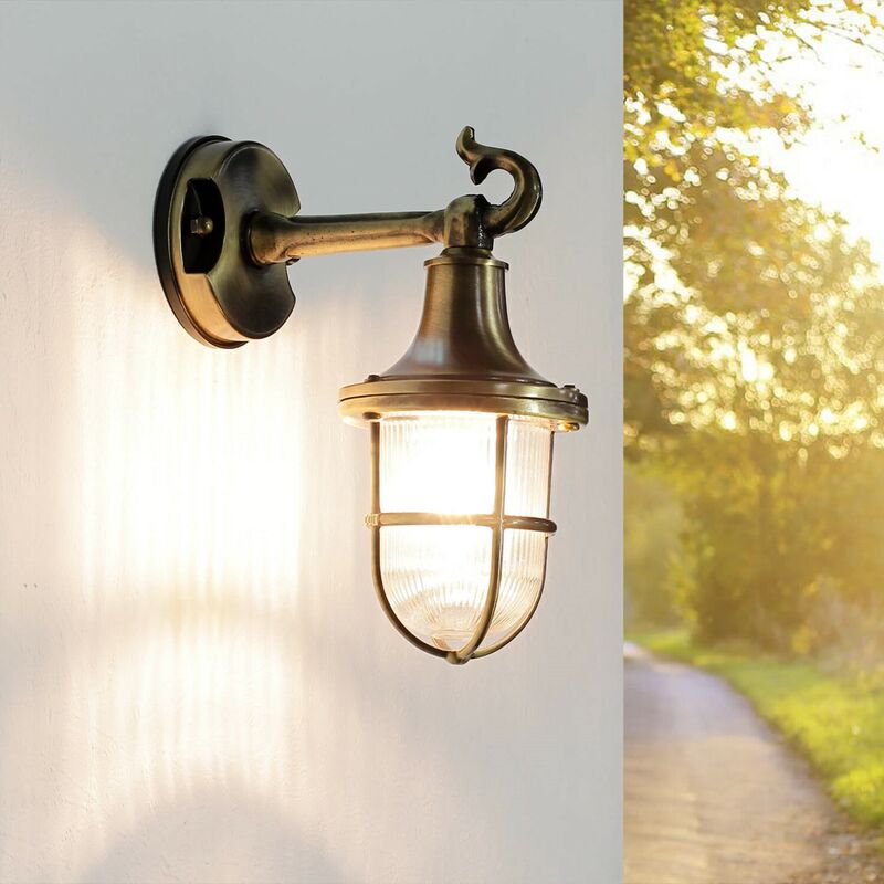 Dettagli del prodotto Materiale: vero ottone, vero vetro Dimensioni: larghezza: 115 mm, altezza: 250 mm, profondità: 190 mm Attacco: 1x E27 fino a. 18W Classe di protezione dagli spruzzi: IP64 Colore: Ottone antico Peso: 1600 grammo Descrizione del prodotto La lampada è realizzata in ottone e vetro. La manifattura greca fa sì che tutti i prodotti Lido siano antiruggine ed protetti perfino dalla più temibile minaccia d'umidità: Lido infatti resiste all'aria salmastra di mare, rendendola perfetta anche per terrazze, cortili e giardini in prossimità di spiagge e coste. Questa lampada per esterni è stata realizzata dalla manifattura Lido Lights Fixture.Lido Lights Fixture è sinoninimo di garanzia e qualità, essendo questa specializzata da decenni in illuminazione per esterni e in continuo sviluppo per offrire prodotti che si adattino alle vostre esigenze.IP43: alta protezione contro l'umidità. Prodotto lavorato a mano: qualità premium Made in EU. Attacco: 1 x E27 con una potenza max. di