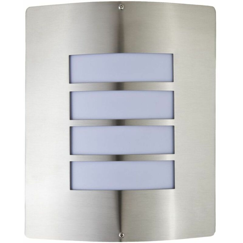 Dettagli del prodotto Materiale: Acciaio inox, plastica Dimensioni: larghezza: 220 mm, altezza: 282 mm, profondità: 90 mm Attacco: 1x E27 (230V), fino a. 40 Watt Classe di protezione dagli spruzzi: IP44 Colore: Argento Descrizione del prodotto La luce è fatta in acciaio INOX e plastica resistente alle intemperie Speciale rivestimento con vernice trasparente - > impedisce il giallo scolorimento