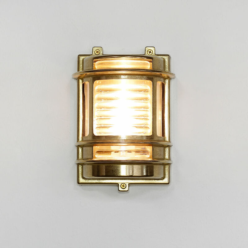 Dettagli del prodotto Materiale: vero ottone, vetro Dimensioni: larghezza: 160 mm, altezza: 220 mm, profondità: 170 mm Attacco: 1x E27 fino a.18W Classe di protezione dagli spruzzi: IP64 Colore: Ottone lucido Peso: 2500 grammo Descrizione del prodotto La lampada è realizzata in ottone e vetro. La manifattura greca fa sì che tutti i prodotti Lido siano antiruggine ed protetti perfino dalla più temibile minaccia d'umidità: Lido infatti resiste all'aria salmastra di mare, rendendola perfetta anche per terrazze, cortili e giardini in prossimità di spiagge e coste. Grazie al paralume in vetro rigato e la sua protezione a griglia, la lampadina è particolarmente protetta dagli agenti esterni. Inoltre, grazie al grado di protezione IP64, Lido è resistente agli spruzzi e alle intemperie. L'Applique da esterni è ideale per l'illuminazione di terrazze, balconi, viali o pareti di casa. Lido è tanto funzionale quanto decorativa! La sua forma, in stile marittimo, rievoca le stive delle navi e gli