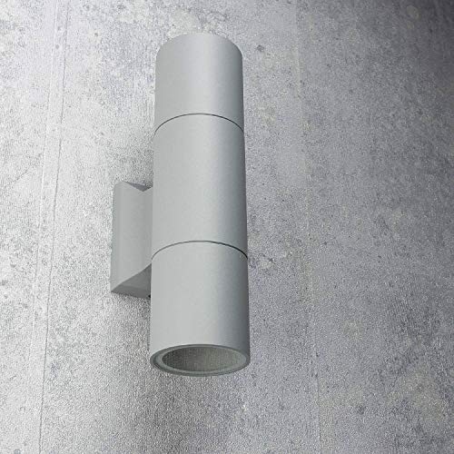 Licht-Erlebnisse - Lampada da parete per esterni, in alluminio, 120 W, Ø 6,5 cm, colore: Grigio