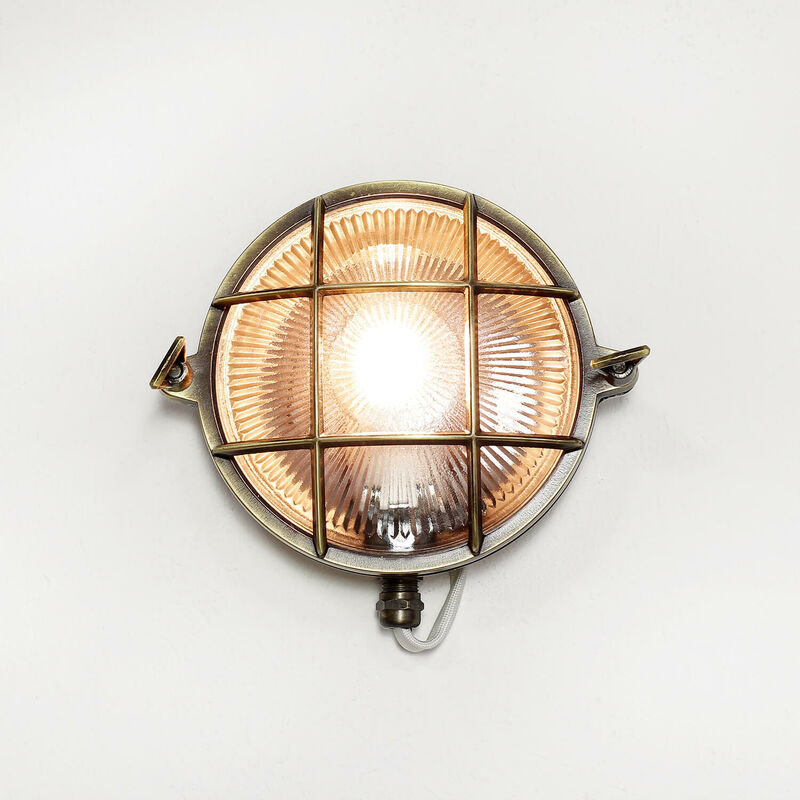 Dettagli del prodotto Materiale: vero ottone, vetro Dimensioni: larghezza: 240 mm, altezza: 240 mm, profondità: 100 mm, diametro: 240 mm Attacco: 1x E27 fino a. 18W Classe di protezione dagli spruzzi: IP64 Colore: Ottone antico Peso: 1900 grammo Descrizione del prodotto La lampada è realizzata in ottone massiccio e vetro. La manifattura greca fa sì che tutti i prodotti Lido siano antiruggine ed protetti perfino dalla più temibile minaccia d'umidità: Lido infatti resiste all'aria salmastra di mare, rendendola perfetta anche per terrazze, cortili e giardini in prossimità di spiagge e coste. Attacco: 1 x E27 con una potenza max. di 18W. Altezza: 140 mm, Diametro: 220 mm Le applique Lido per esterni in ottone massiccio in stile antico a forma di oblò conferiscono all'atmosfera non solo un tocco originale, rievocando lo stile marititmo di navi e sottomarini segreti, ma anche un clima accogliente e sicuro grazie alla loro formidabile illumnazione. Il paralume in vetro scanalato consente