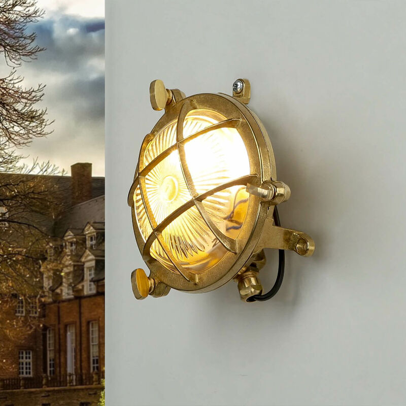 Dettagli del prodotto Materiale: Ottone, vetro Dimensioni: larghezza: 140 mm, altezza: 140 mm, profondità: 60 mm, diametro: 140 mm Attacco: 1x G9 fino a. 25W Classe di protezione dagli spruzzi: IP44 Colore: Ottone, trasparente Peso: 700 grammo Descrizione del prodotto La lampada è realizzata in ottone e vetro. La manifattura greca fa sì che tutti i prodotti Lido siano antiruggine ed protetti perfino dalla più temibile minaccia d'umidità: Lido infatti resiste all'aria salmastra di mare, rendendola perfetta anche per terrazze, cortili e giardini in prossimità di spiagge e coste. Attacco: 1xG9 con una potenza fino a 25 Watt Larghezza: 140 mm, altezza: 140 mm, profondità: 60 mm. Le applique Lido per esterni in ottone massiccio in stile antico a forma di oblò conferiscono all'atmosfera non solo un tocco originale, rievocando lo stile marititmo di navi e sottomarini segreti, ma anche un clima accogliente e sicuro grazie alla loro formidabile illumnazione. Il paralume in vetro scanalato