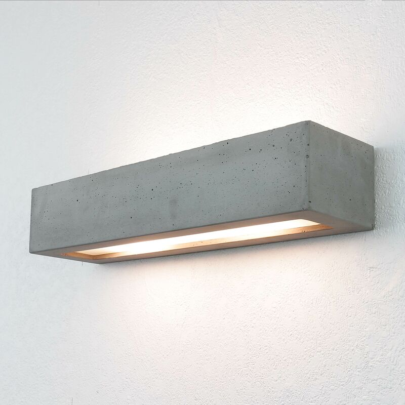 Dettagli del prodotto Materiale: Calcestruzzo Dimensioni: larghezza: 515 mm, altezza: 100 mm, profondità: 130 mm Attacco: 2x E27 fino a. 60 Watt Classe di protezione dagli spruzzi: IP20 Colore: Calcestruzzo Peso: 4430 grammo Descrizione del prodotto La lampada da parete è realizzata in cemento. Con il suo accento underground e il suo design elegante moderno si ottiene una elegante illuminazione dal carattere originale. Ideale in camera da letto, in corridoio e anche in salotto. Il design Up & Down costituisce una formidabile illuminazione indiretta siccome la luce viene emessa sia dall'alto che verso il basso. Sono possibili leggere variazioni di colore e irregolarità nelle lampade in cemento. Questi non sono un motivo di reclamo.