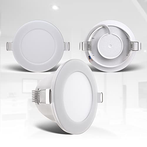B.K.Licht Faretti LED da incasso per bagno, set di 5, resistenti all'acqua IP65, diametro foro 68mm, ultra piatti 30mm, LED integrati 5 x 3W, 5x 350 Lm, luce bianca neutra, bianco