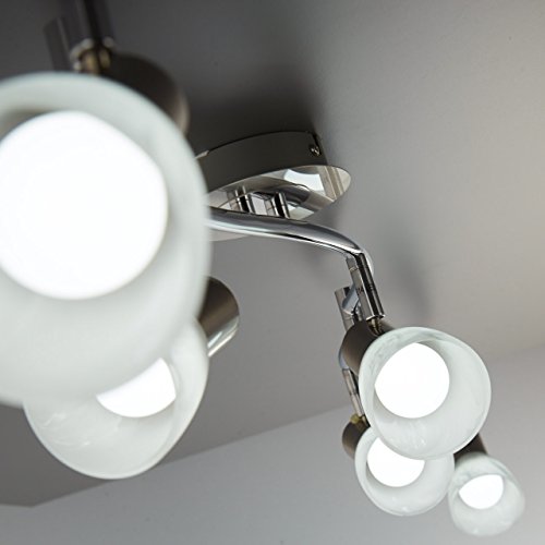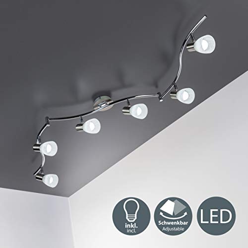 B.K.Licht Faretti LED a soffitto orientabili, include 6 lampadine E14 da 5W, luce calda 3000K, plafoniera moderna a soffitto per l'illuminazione da interno, lampadario in metallo e vetro 230V IP20