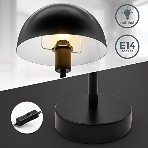 B.K.Licht Lampada comodino, attacco per lampadina E14 max. 25 W non inclusa, altezza 32cm, lampada da tavolo con interruttore sul cavo, nero opaco